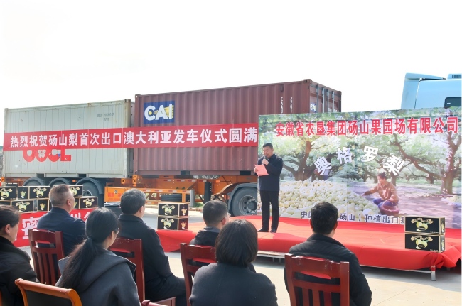 3月11日,滿載7噸“皖墾翡翠”碭山梨的冷鏈專車從安徽農(nóng)墾碭山果園場“云上梨園”駛出,將運抵澳大利亞,開啟安徽農(nóng)墾特色農(nóng)產(chǎn)品出海新航程。