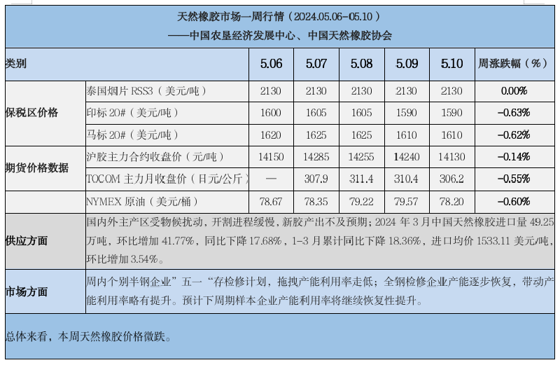 天然橡膠、大豆、玉米市場(chǎng)一周行情(2024.05.06-05.10)