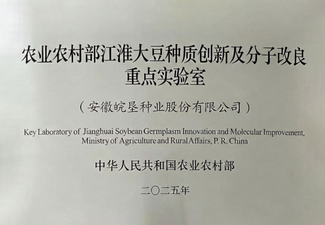 該實驗室創(chuàng)建于2025年12月,由皖墾種業(yè)公司牽頭,整合匯聚安徽農(nóng)業(yè)大學(xué)、安徽省農(nóng)業(yè)科學(xué)院等科研教學(xué)單位的優(yōu)勢資源和皖墾種業(yè)種子育繁推一體化發(fā)展優(yōu)勢,圍繞構(gòu)建大豆生物育種平臺,培育大豆新品種,主攻大豆產(chǎn)業(yè)發(fā)展“卡脖子”技術(shù),推動成果轉(zhuǎn)化及大面積推廣應(yīng)用。
