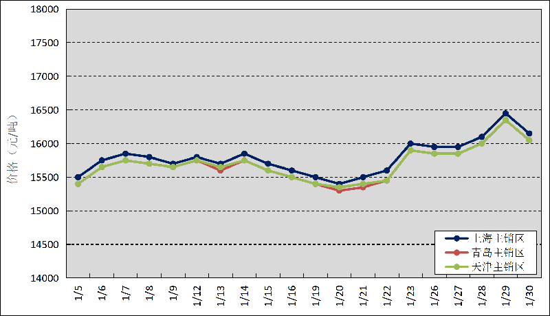 圖1 2026年1月國(guó)內(nèi)主銷區(qū)天然橡膠價(jià)格走勢(shì)