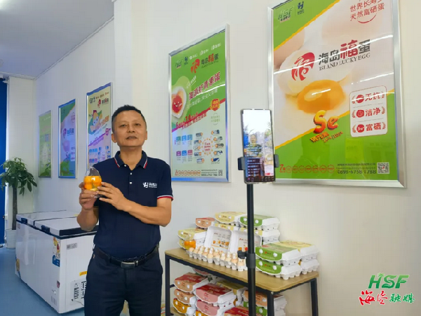 工作人員正在直播銷售“海島福蛋”。黃薇 攝