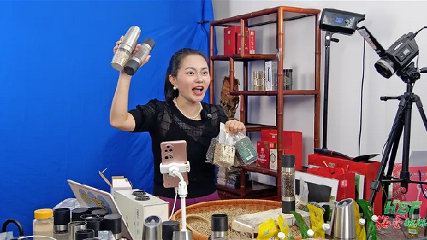 海墾“昌農(nóng)牌”大坡胡椒直播間帶貨現(xiàn)場。劉家宋 攝
