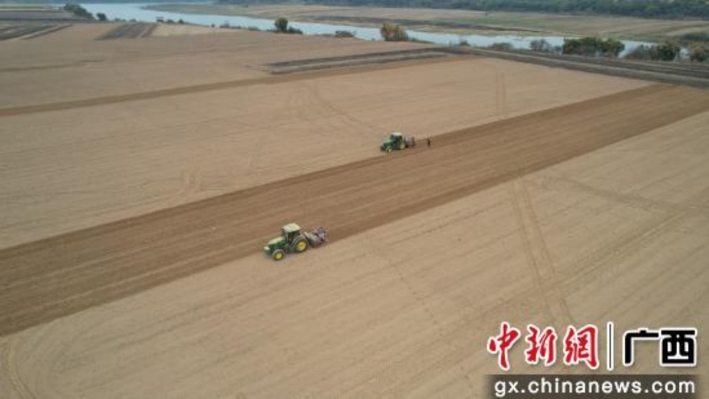 2月10日,記者來到象州縣運(yùn)江鎮(zhèn)芽村的千畝連片甘蔗種植基地,2臺安裝有北斗導(dǎo)航輔助駕駛系統(tǒng)的拖拉機(jī)在蔗田里來回穿梭,一次性完成開溝、下種、施肥、覆土等工序。